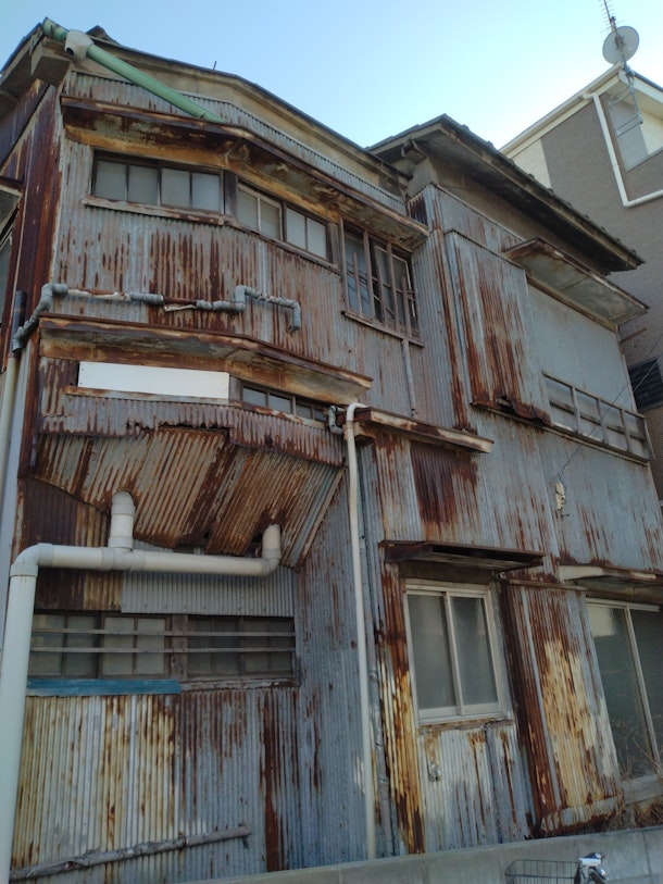 川崎市川崎区浜町。このトタンは年季が入っています😊。