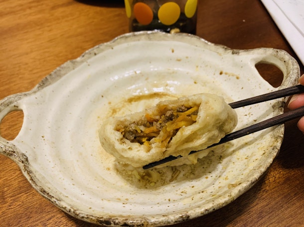 このまま食べても美味しいし、ニンニク醤油(自家製の腊八蒜)のタレをつけても美味しい