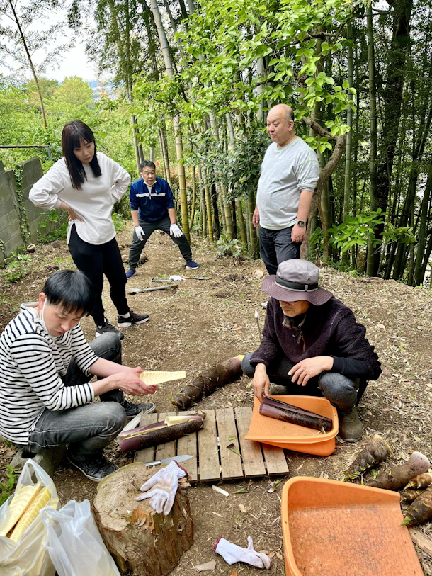↑昨年は平日に法人様グループのオフサイトミーティングで筍掘り体験を利用いただきました!