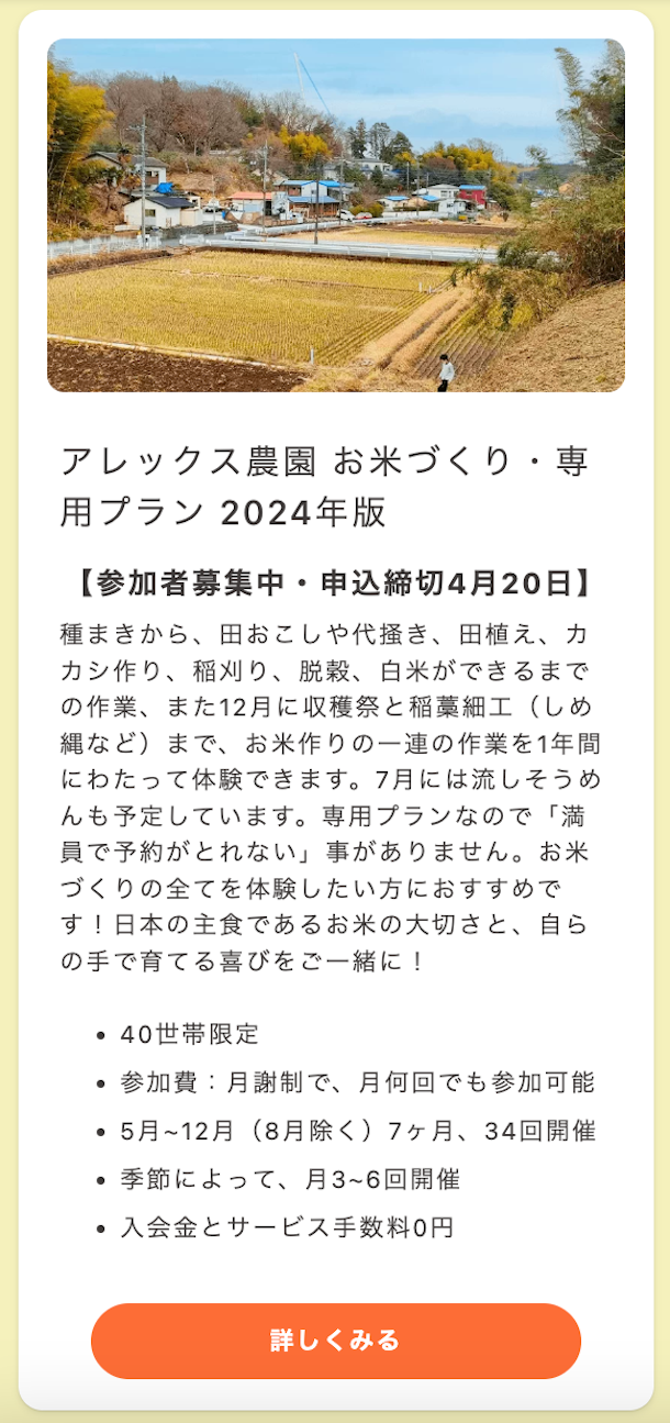 今年度、アレックス農園のお米作りに興味があり、ご参加希望の方はこちらからぜひ: