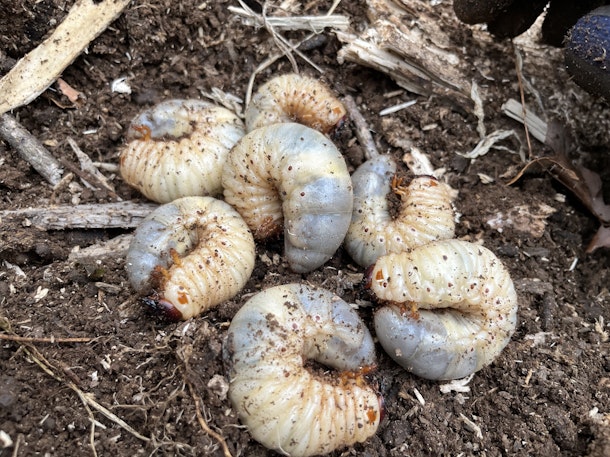 カブトムシの幼虫も!たくさん出て、思わずにっこり。