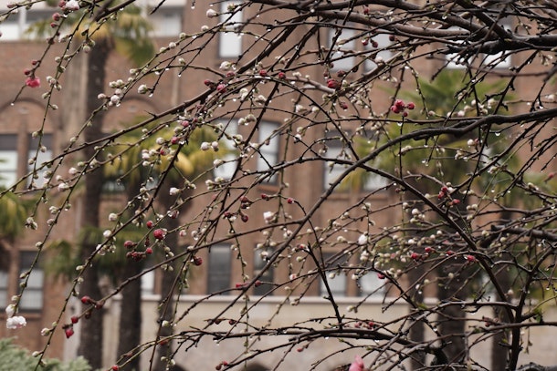 3月25日は、まだ、一分咲くらいで雨に濡れてひっそりとしていました。