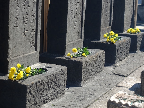 泉岳寺では、松の廊下の刃傷事件から、討入、その後の赤穂義士たちについて説明。