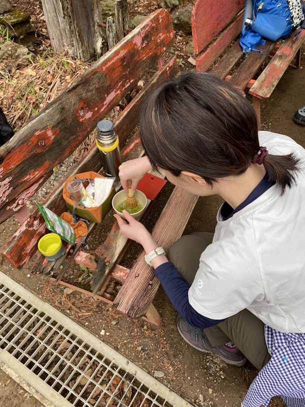 庭で野点を楽しみ、足腰のお守りを購入した方も(^^)