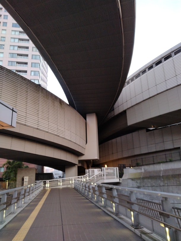 目黒区大橋。素敵な流線型をした大橋ジャンクション。東急田園都市線 池尻大橋駅近くにある。大橋ジャンクション上部には目黒天空庭園が・・・。