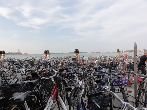 船着き場の駐輪場にはたくさんの自転車がありました。