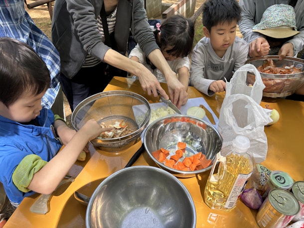 大人も子どもも、一つのことに熱中する人、色んなことやってみたい人、ただ走り回る子、ずっとおままごとする子、虫探しする人…などなど、それぞれが興味のあることを色んな人と関わりながら、まずはのーんびりご飯準備!