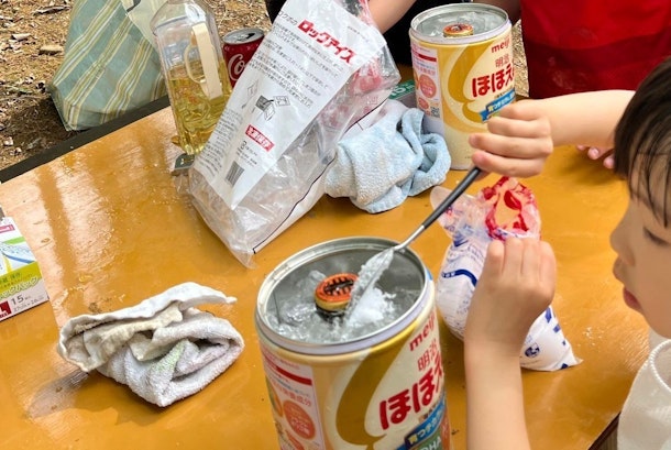 ▼缶蹴りタイムは約5分!バッチリアイスができました✨