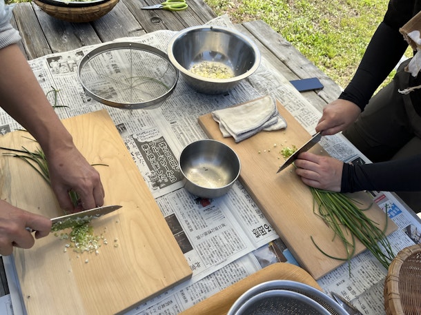 野蒜を収穫して、下処理にはちょっとしたコツも一緒に「刻み」ながら体験して、野蒜醤油が完成! すぐに使い切ってしまうくらい美味しいのです♪