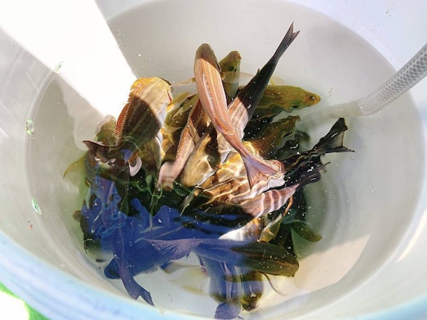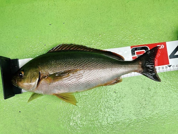 イサキ以外には、ウメイロ、マルアジ、岩礁帯につく魚全般(比較的カラフル)が釣れることがあります。
