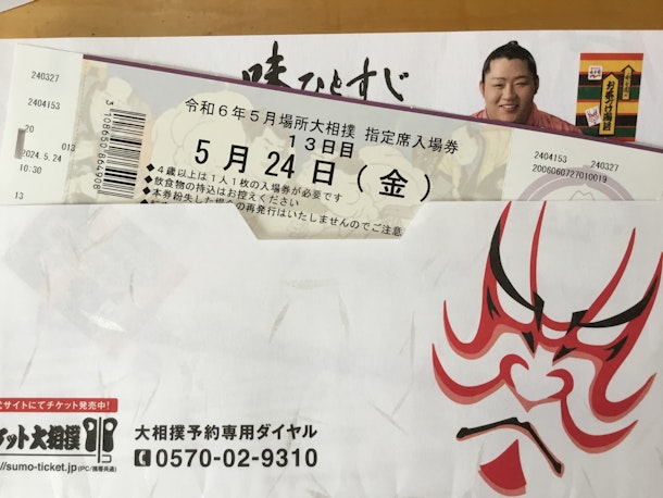 2階向正面イスA席 先着1名、 7,350円です。 国技館前で受け渡しになります。