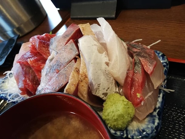 海鮮丼ということで、「魚菜はざま」、ピンと来る人もいるかもしれませんが、もんじゃの老舗「はざま」の海鮮系の居酒屋店舗です。ランチはめちゃ盛りで大人気の店です。