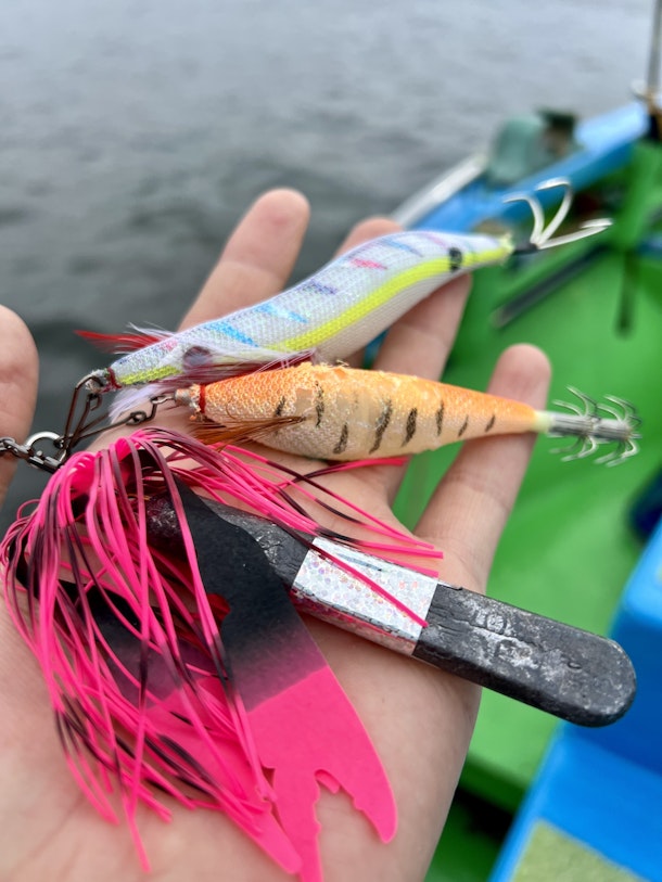 ▼タコ釣りではエギというルアーをつかった釣りが人気です。