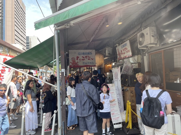 普段に比べれば少な目の人で歩きやすい。中には、平日はプロ向けも続けながら休市日は少し砕けた感じで食べ歩きを提供。