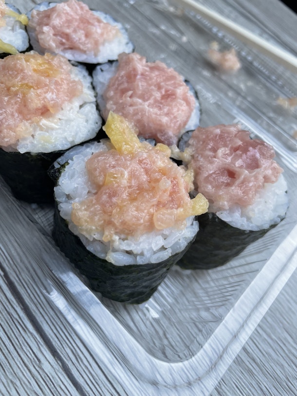 日曜日の築地の写真です。朝早めの時間。日曜日は、休市日なので食のプロはあまり来ません。なので観光客もしくは地元の人たちがくるのです。