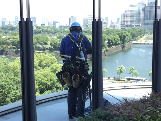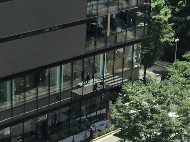 この日、この界隈は窓ガラス清掃作業集中日だったよう。