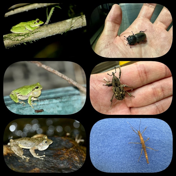 6/15(土)から高尾山ケーブルカーが21:30まで動くようになります🚠 これからの季節は昆虫観察にたくさんの子どもたちや保護者の方が高尾山を訪れます🏔️ 僕はわざわざ登らなくても高尾山口駅周辺でたくさんの生き物に出会えます⭐️ 6/14金はハクビシン・モリアオガエル(卵・オタマジャクシも)・ヤマアカガエルオタマジャク・ニホンアマガエル・カジカガエル・コクワガタメス・オオゾウムシ・トゲナナフシに出会えました🐸 高尾ホタルツアー後、約45分程度の観察です⭐️ 大切なのは生き物が居そうなところを探すだけでなく、常にアンテナをはることです😊 すぐ隣を昆虫が散歩しているかもしれません🦗
