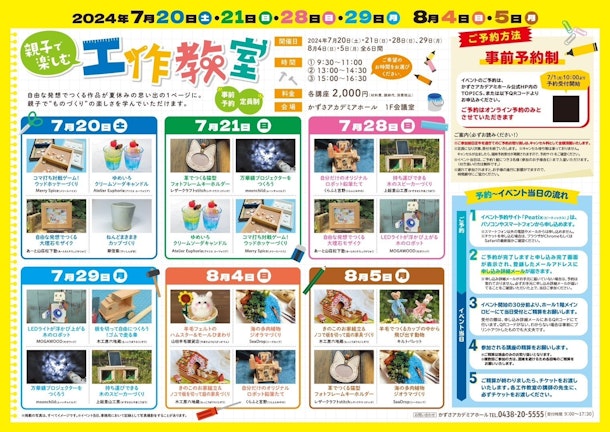 また、7-8月には、木更津の〝かずさアカデミアホール〟で【親子で楽しむ工作教室】を行います。