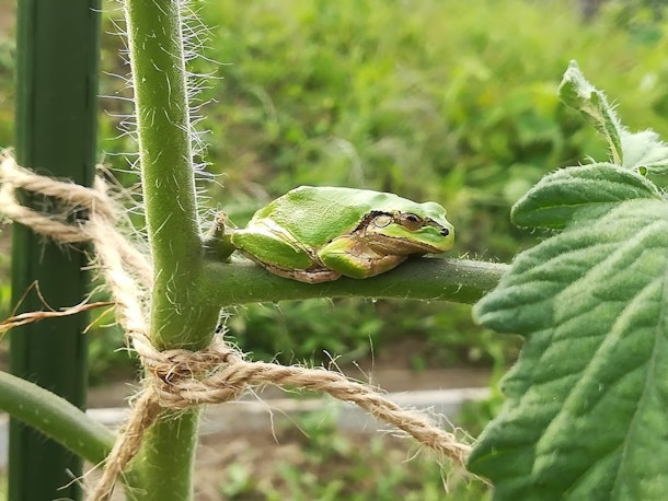 よく野菜に抱き着くようにくっついていてかわいいです。