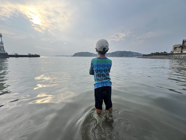 釣り場によりますが、波が穏やかな海岸では海パン&サンダルで海に浸かりながらの釣りも心地よいシーズンです。