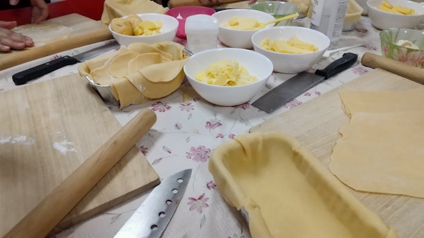 1人1人自分のアチマ(チーズパイ)を作ります。忙しい体験ですが、アチマを作っている間にオジャクリ(豚肉とじゃがいもの炒め物)と人参のプハリも作ります。