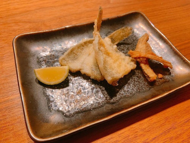 ▼こちらはハゼ天。塩と天つゆで最高の美味。天丼にしても旨い!小型は唐揚げにすると子供がパクパク食べます!