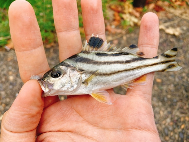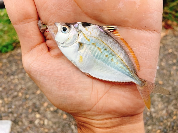 ▼こちらはコトヒキ。南西方面だと30㎝ぐらいの個体がいるんですが、神奈川では手の平サイズが最大です。食べられます