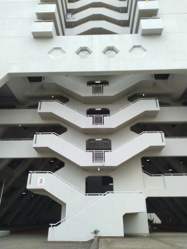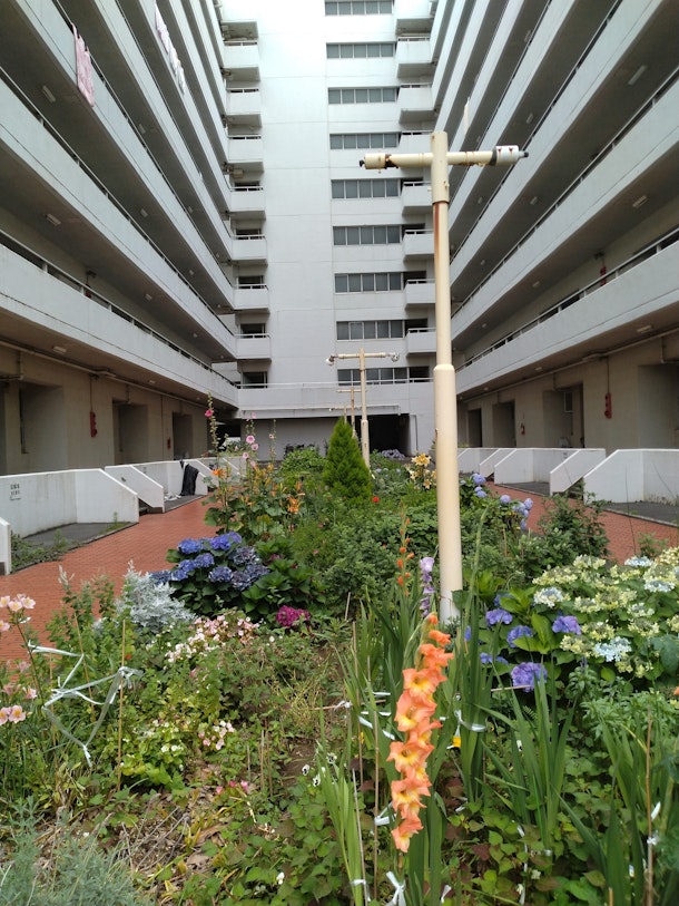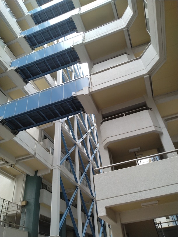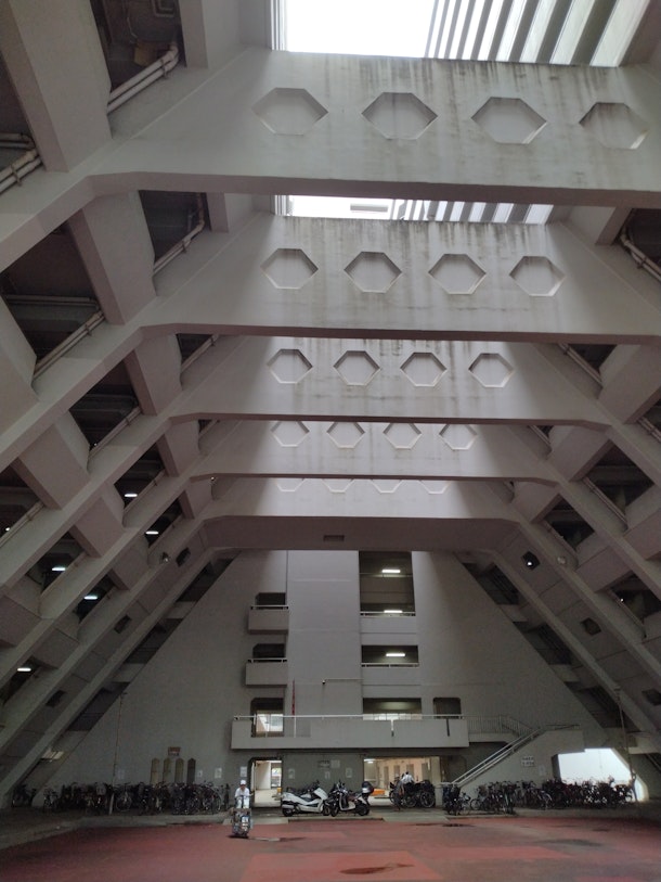 凸型に設計された団地は外から見ると階段みたいに見えて、更に内部の1階から5階位までは、巨大な空間、まるで異次元の宇宙(大袈裟すぎるやろ😊)が広がっているのである。