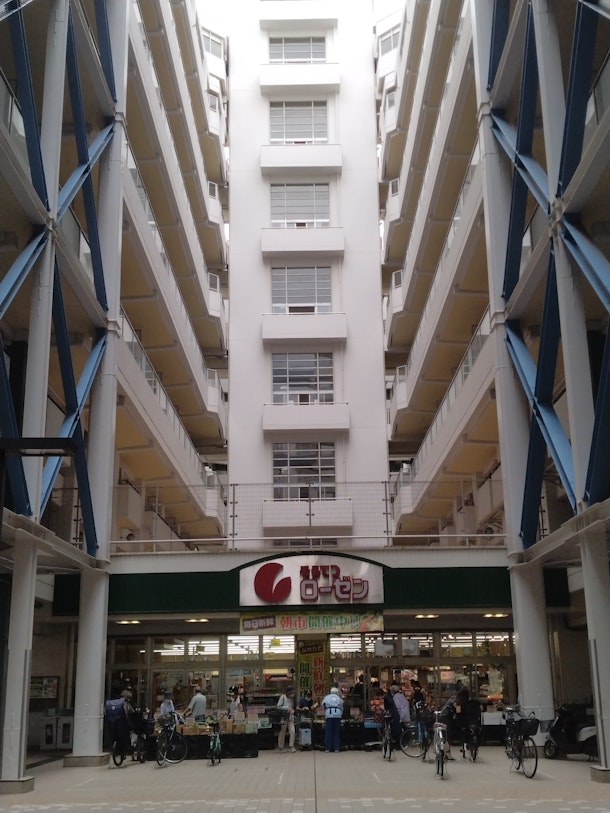 県営・市営・住宅供給公社の3つが合わさった団地群だけあって、団地の一部1階は商店街になっている。