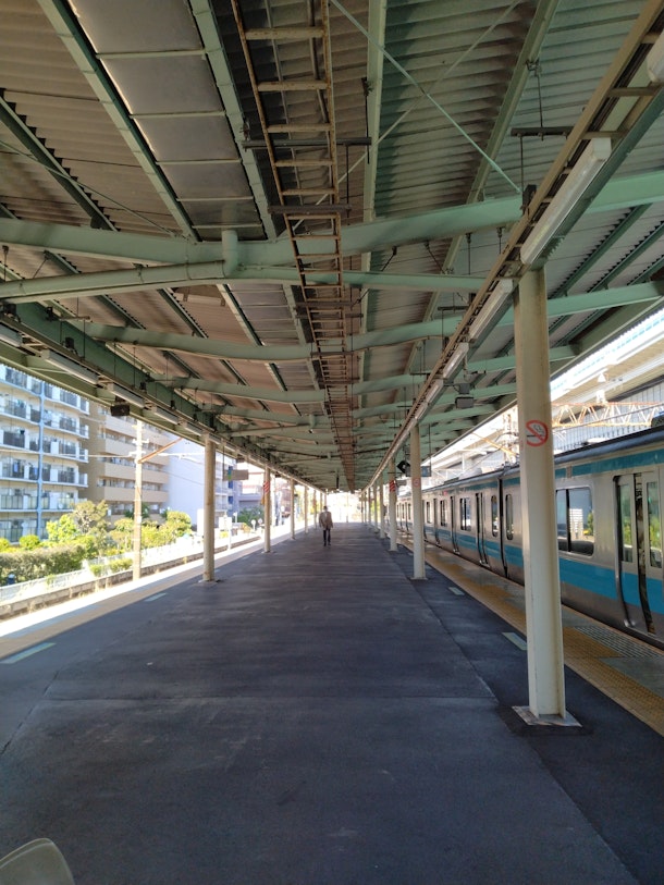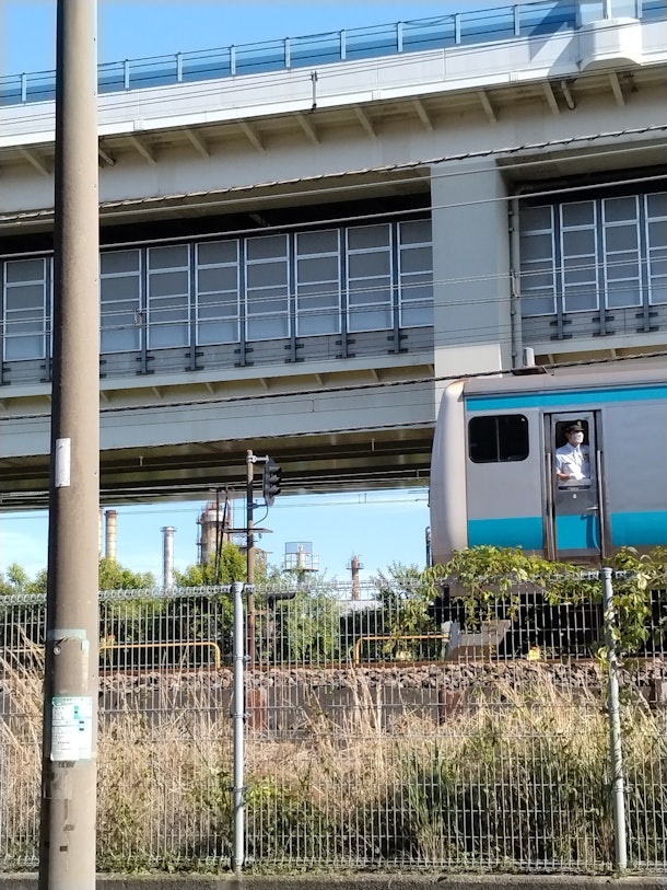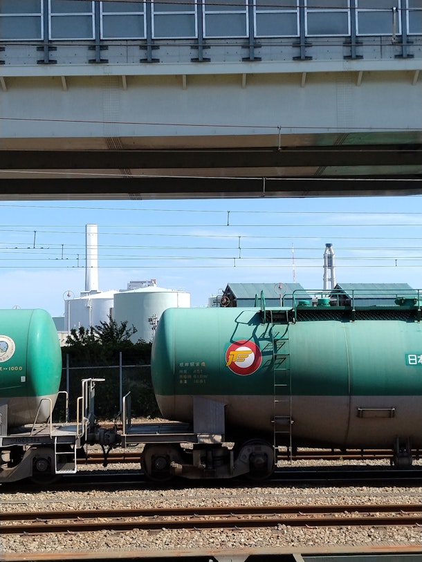 まず、根岸駅の駅舎がシンプルな造りになっていて、駅構内から海沿いを眺めると、遠くには工場が、そして近くには中々珍しい、石油製品を輸送するタンク車(車両)を見ることが出来る。