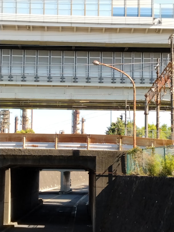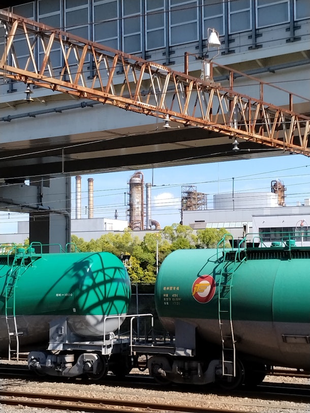 首都高、タンク車、工場、流線型の線路、根岸駅⁉(横浜市磯子区東町)
