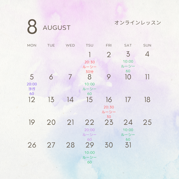 8月スケジュール🍉夏休みはお子様も一緒に😊