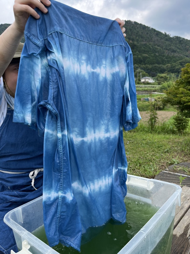 夏空の下、涼しげで透き通るような生葉染めの色が美しかったです。