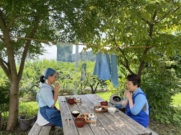 ④藍畑を眺めながらのお昼ごはん家庭菜園で育った野菜やお米を使った我が家の家庭料理をお楽しみください。