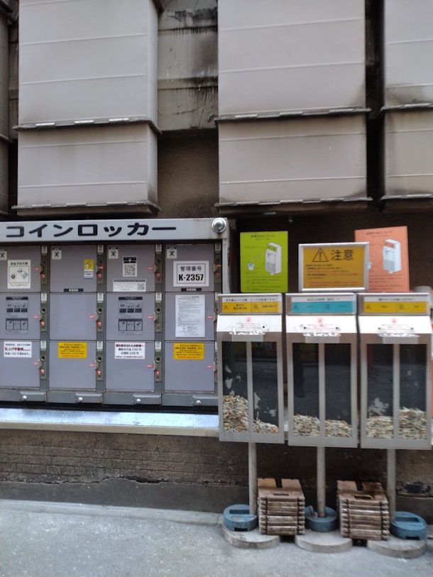 コインロッカーの横にあるのは一風変わった喫煙所⁉たばこの吸い殻入れ⁉