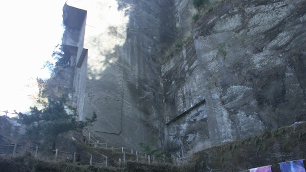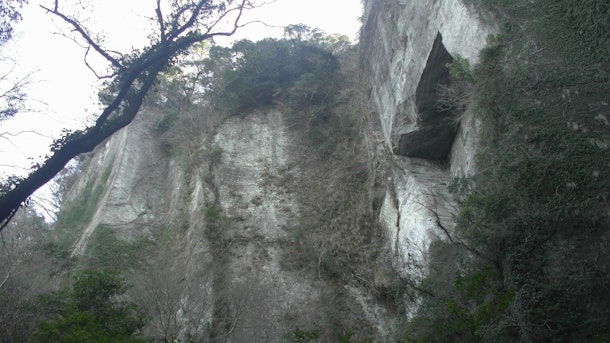 山中にある房州石の石切り場は神秘的ともいえる雰囲気があり魅力的です。