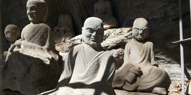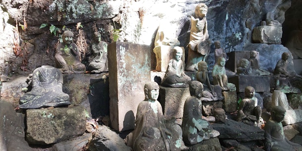 山中各所にある岩窟に安置された数多くの石仏が独特の雰囲気を醸し出しており