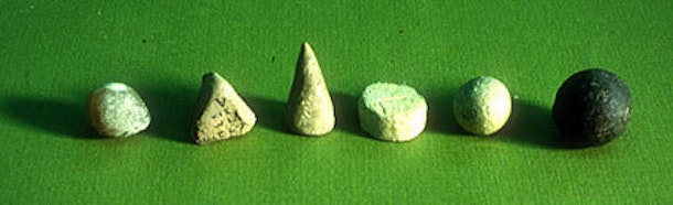 紀元前7500年〜3500年、古代メソポタミアでは下の写真にある粘土駒を用いて、家畜や物品の数を数えるなどの管理を行なっていたそうです。今でいう、経営管理ですね。三角錐、円柱、球体は穀物の大きさを示しています。