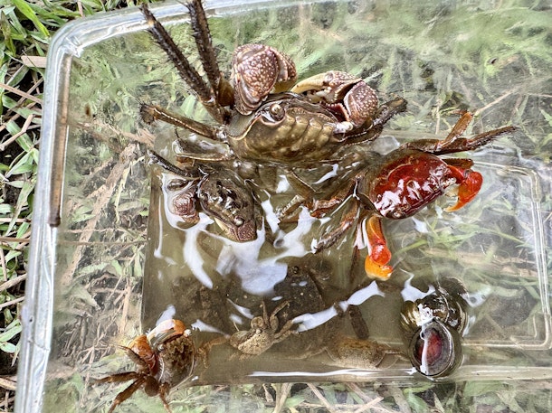 9月から午前中の涼しめの時間のみ、赤羽ツアーを再開します✨ ベンケイガニ・クロベンケイガニはもちろん、小さな魚・ヌマガエル・カダヤシなどさまざまな生き物に都内で出会えます🐸 後は秋に向けてバッタ類やカマキリたちも増えてきます🌿 高尾や飯能は少し遠いご家族や近場で楽しみたいご家族には良いかと思います✨