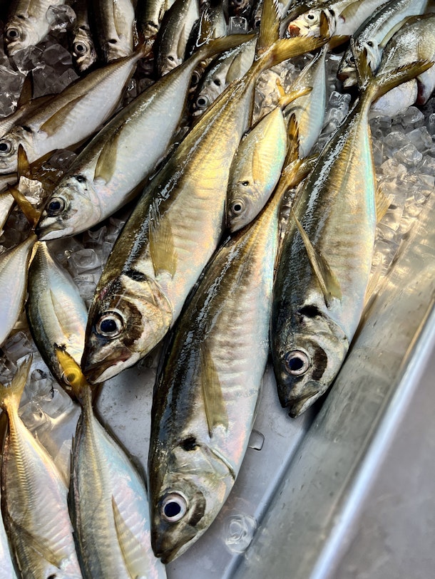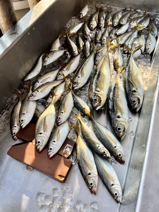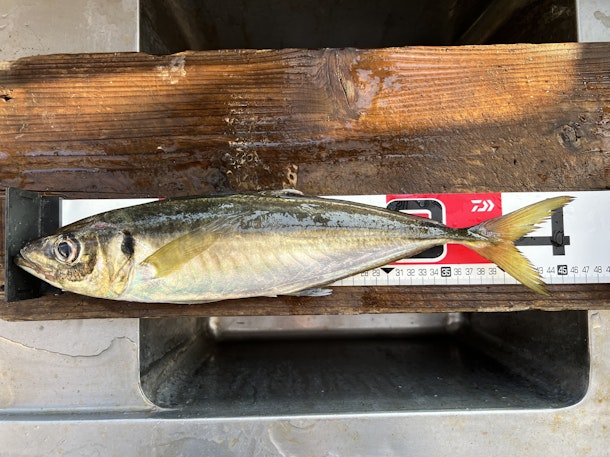 台風明けの影響なのか、42〜45センチ以上の大アジが3尾。