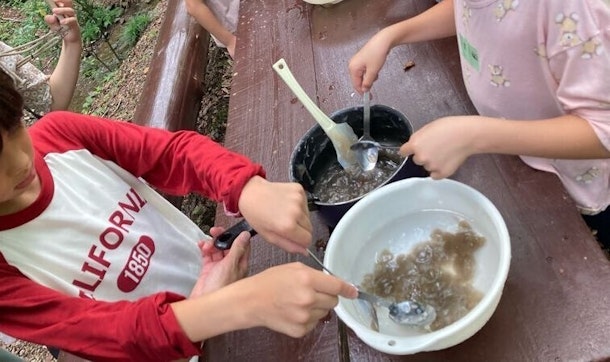 わらび餅を食べたり、川で遊んでいるうちに、あっという間に終了のお時間になりました。