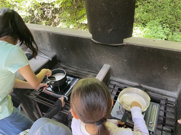 ランチを食べ終えた子から、わらび餅作りに挑戦していきます。