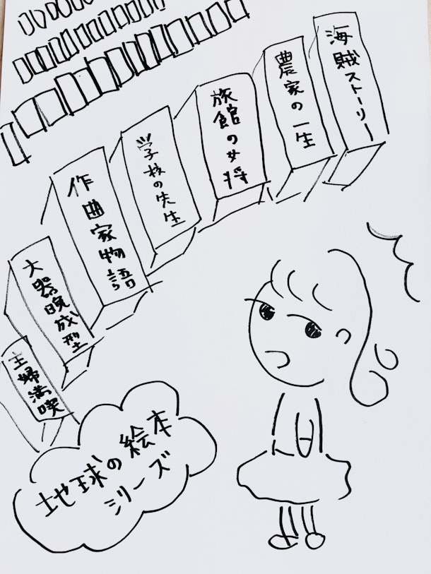 目の前にずらりと、地球の絵本がずら~っとたくさん並んでいました。