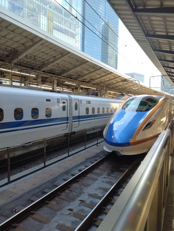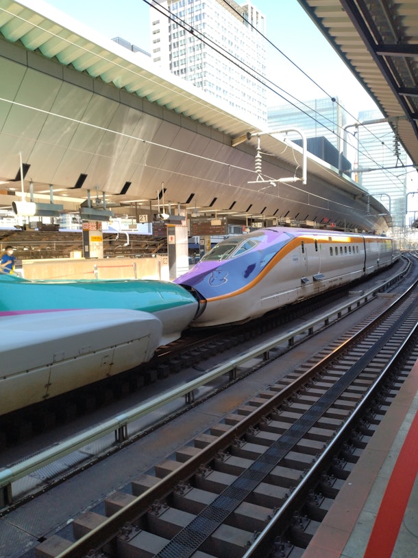 更に反対側のホームには東北・秋田新幹線の車輛が・・・・外国人観光客が新幹線を気に入るのは当たり前。日本人が見ても素敵で未来的なフォルムと実力を兼ね備えているのだから・・・・・。