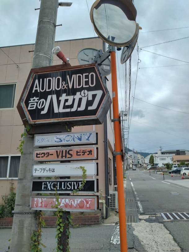 長野市三輪。テープデッキやビデオの看板・・・・最強です。