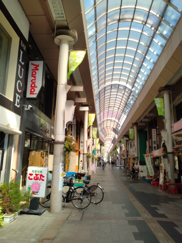 長野市権堂町の権堂アーケード。長野市民の生活を支える様々なお店が軒を連ねている。