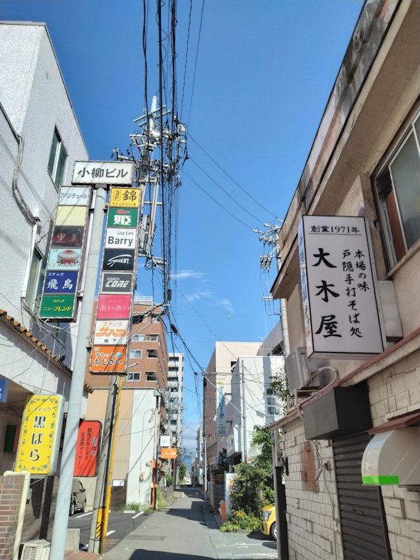 蕎麦屋とスナックが同じエリアに・・・・何でもあり的な器の大きな町なのだ。