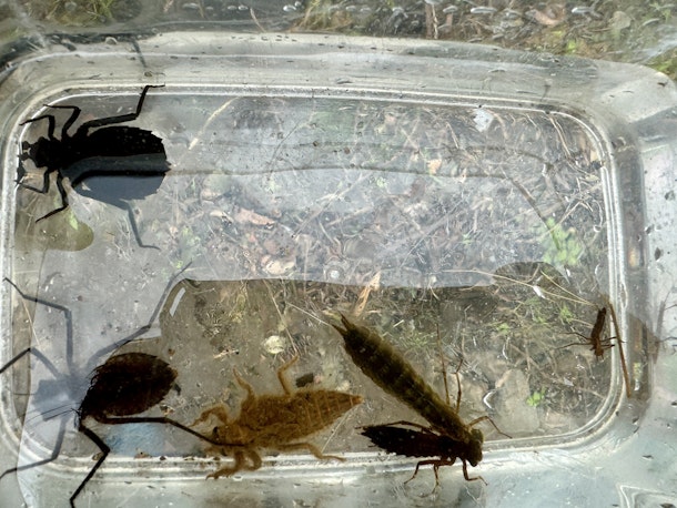 ①高尾の生き物ハイクは5〜6種類のヤゴと釣りで賑わっています!ニホンカワトンボヤゴ・コヤマトンボヤゴ・ギンヤンマヤゴ・ヤマサナエヤゴ・コオニヤンマヤゴ・コシボソヤンマなどのヤゴが見られます✨ ヤゴの形はみんな違いますが生まれてくるトンボの形は全て一緒😊