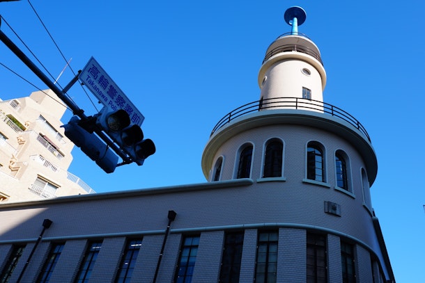 高輪台地の一番高台に建つ高輪消防署二本榎出張所はドイツ表現形式で