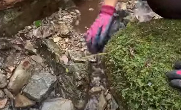 午後は川のお手入れをする時間なのですが、お手入れってどういうこと??と頭がハテナになります。お手入れでは、ちょっとした詰まりがある部分の流れを少し変えてあげるイメージ。それによって、川が気持ちよく流れ始め、そこに繋がっている森から流れ出る水も流れていくようになるそうです。